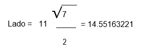Con lo que obtenemos el valor que íbamos buscando. El valor de cada lado del Rombo está relacionado con el radio de la circunferencia de esta manera. En nuestro Rombo, cada lado vale: