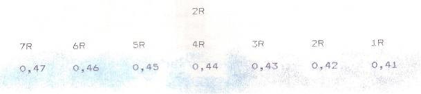Deberíamos primero analizar la radiación añil que es la correspondiente al 2R. Imaginemos con números aleatorios que el espectro de esta radiación va desde 0,41 a 0,47 μ (micras), cifras que corresponden a la longitud de onda.