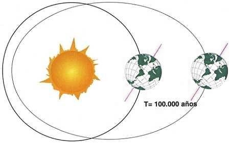La orbita que sigue nuestro planeta alrededor del sol sigue un modelo elíptico, pero variable, ya que la excentricidad de la elipse va variando con el tiempo. La forma de la órbita forma varios ciclos, siendo el ciclo más conocido de unos 100.000 años. Esta excentricidad se debe al Sol y la atracción gravitatoria ejercida por otros planetas.