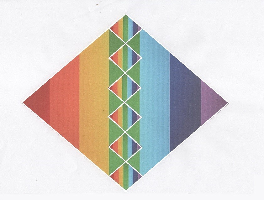 Con lo que, como resultado final, tendríamos la nueva representación de los planos de conciencia en el Rombo. El dibujo final, sería éste, en el que observamos la posibilidad de representar los planos de conciencia en la diagonal menor.