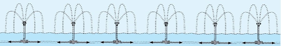 Tendríamos entonces la posibilidad de que el agua (que está siempre inmutable en la base, abarcando todos los surtidores), se pudiera manifestar en cualquiera de los diferentes surtidores en mayor o menor cantidad, dependiendo del efecto que se quisiera conseguir.