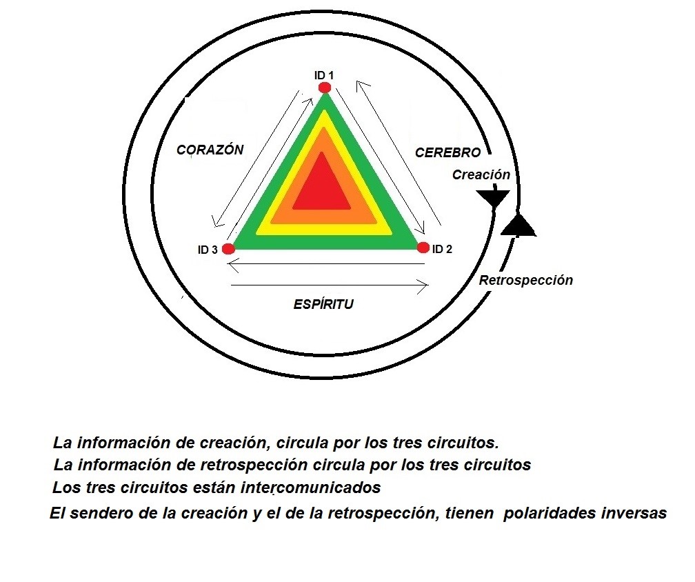 Y al mismo tiempo, desde ID3, se pone en marcha el circuito del corazón, que finaliza en ID1, desde donde la experiencia rebota y regresa al punto de inicio que era ID3, cerrando de este modo el circuito del corazón.
